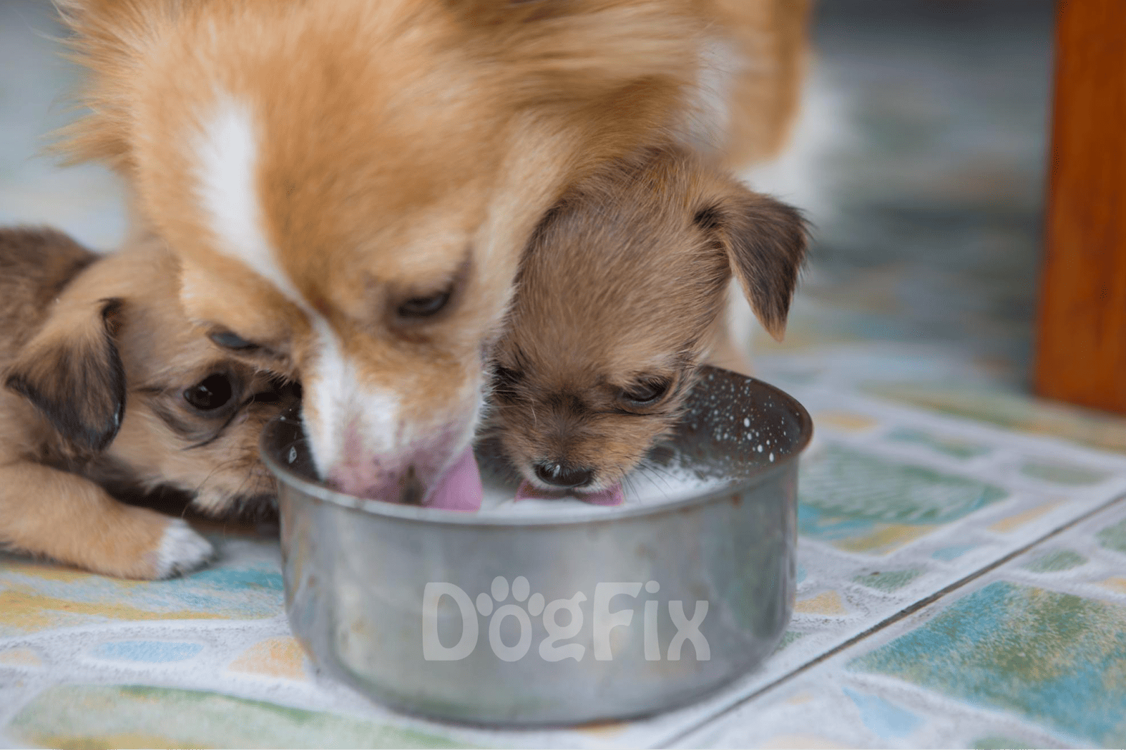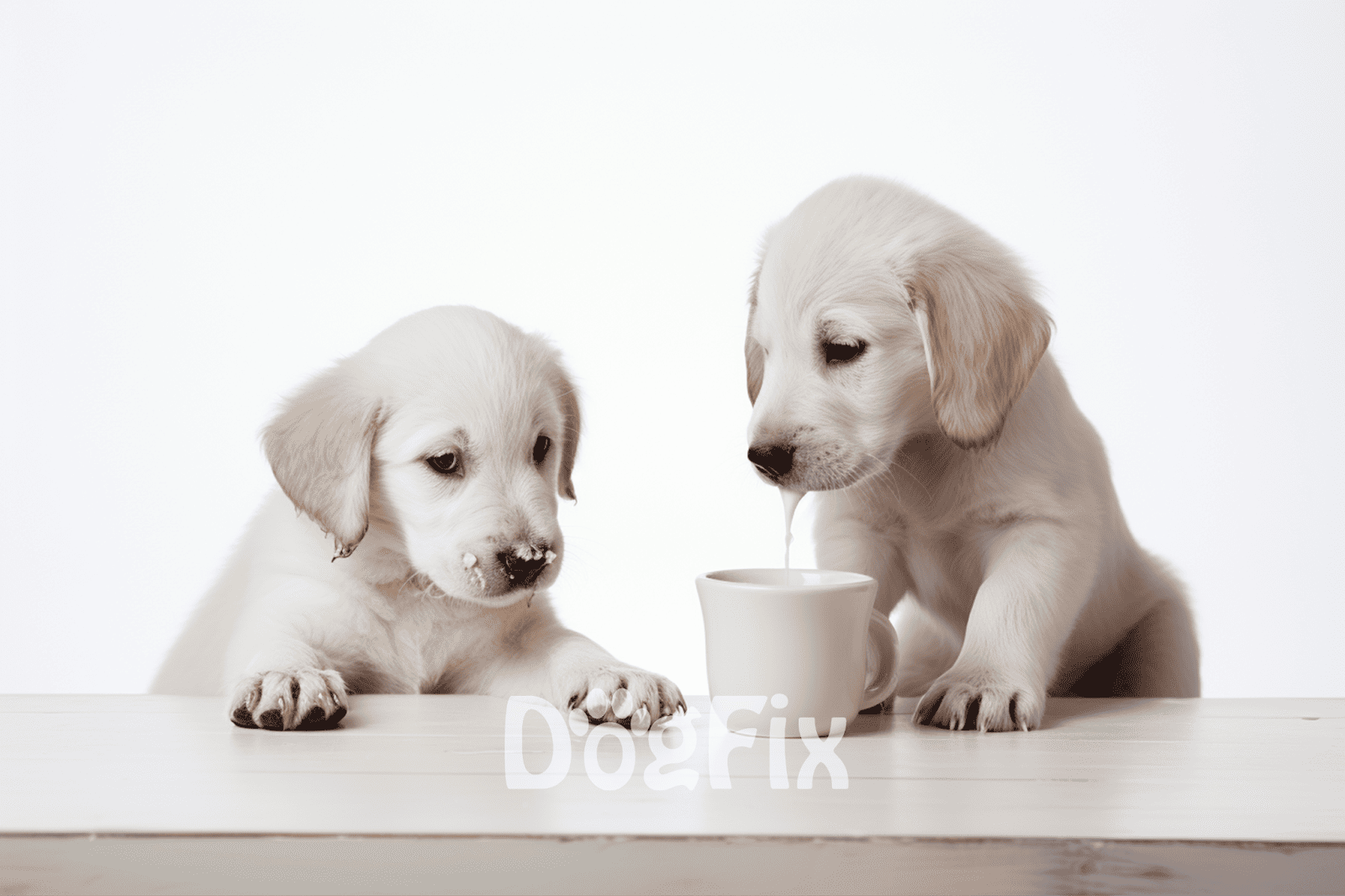 Starting with the tiny furballs – nursing puppies should stick to mama’s milk. Once they’re off the boob, a little bit of cow’s or goat’s milk might be fine if they can handle lactose and don’t have an allergy.